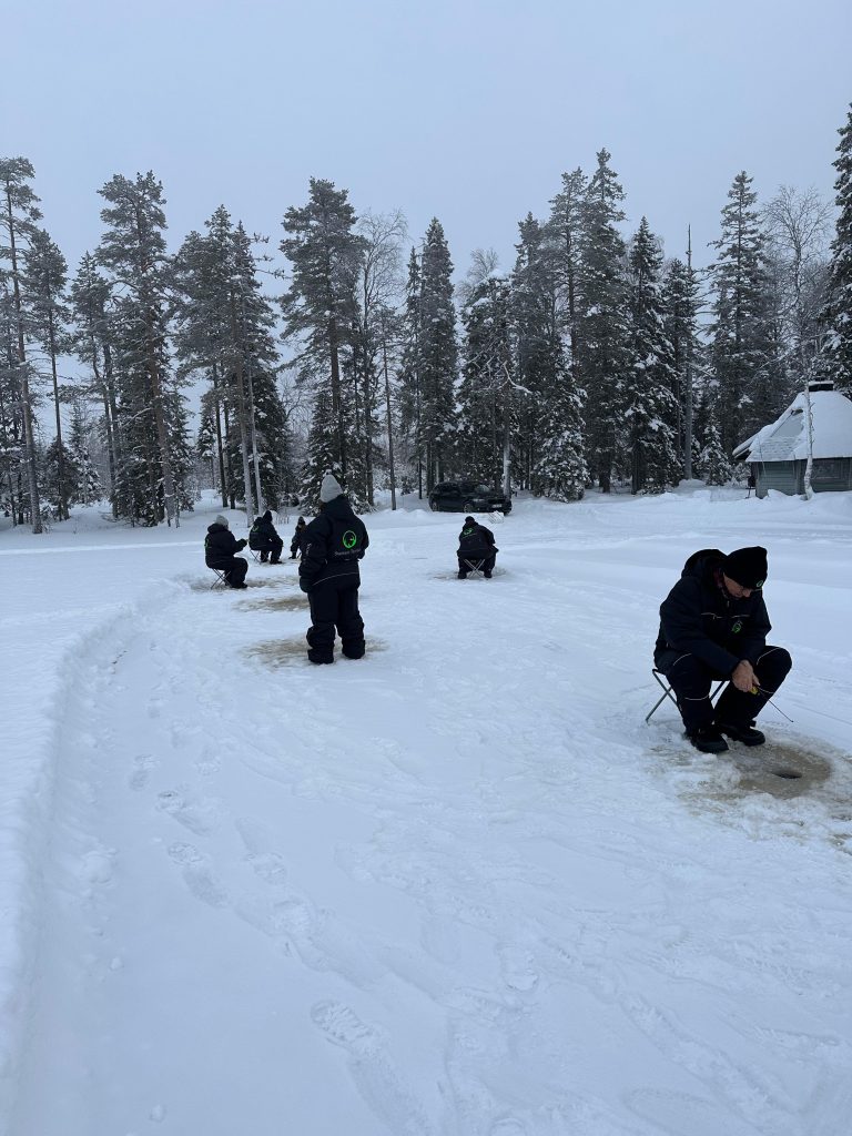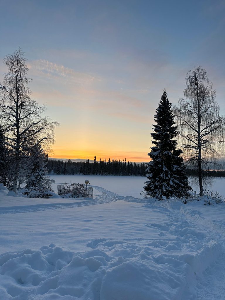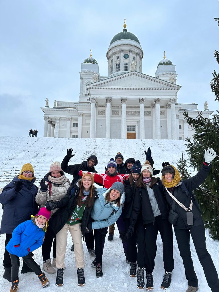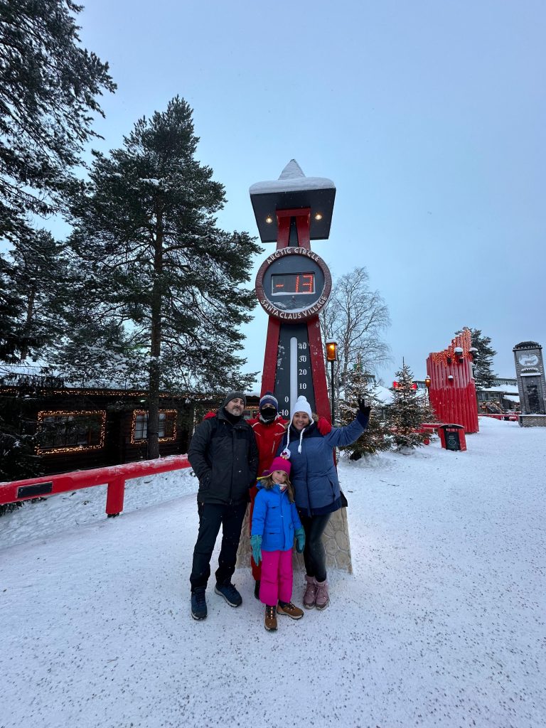 Llegamos hastaRovaniemi, allí conocimos a Elfos, condujimos motos de nieve, comimos salmón y reno, cantamos frente al fuego mientras hacíamos salchichas, montamos en trineo de renos, les dimos de comer…